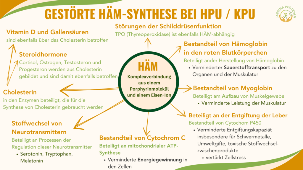 Bei einer HPU / KPU ist nicht nur der Stoffwechsel gestört. Auch die Entgiftungsleistung des Körpers ist betroffen, da das HÄM an verschiedenen Stellen „verbaut“ wird, so auch im Cytochrom P450.